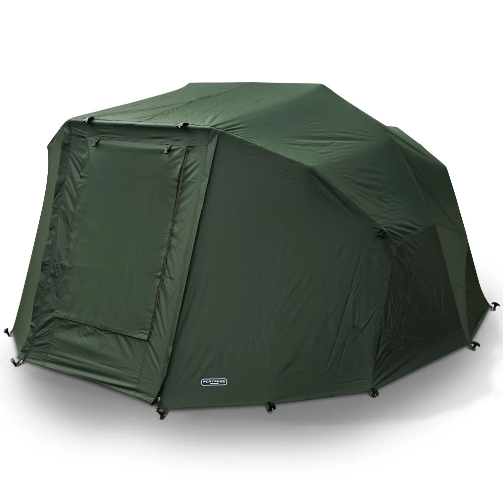 Overwrap for our Fortress 2 man bivvy WITH HOOD, (NOT FOR STANDARD VERSION WITHOUT HOOD) with mesh and clear vinyl window/door. Also includes 12 high grade bivvy pegs. Overwrap supplied in handy carry bag.