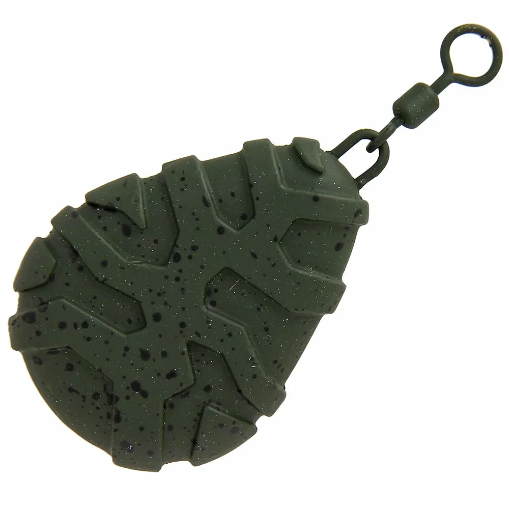 A pack of 10 x 3 oz flat pear leads, ideal for stable casting and solid bottom‑holding. Finished in a dark green soft‑touch, non‑reflective coating with black speckles for a discreet presentation, and supplied fitted with a size 8 swivel.