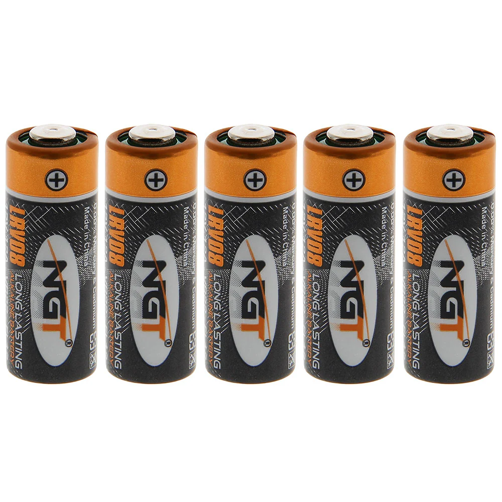 A card of 5 x 12v (LRV08) cell batteries. (Suitable for use in all NGT bite alarms.)
